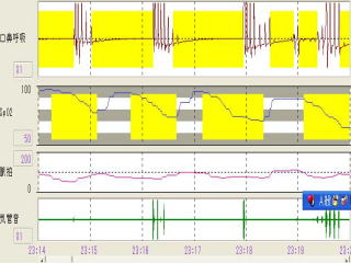 簡易検査で睡眠時無呼吸症候群疑いの場合に行います。睡眠中の呼吸状態や脳波を解析し、その後の治療方法を検討します。